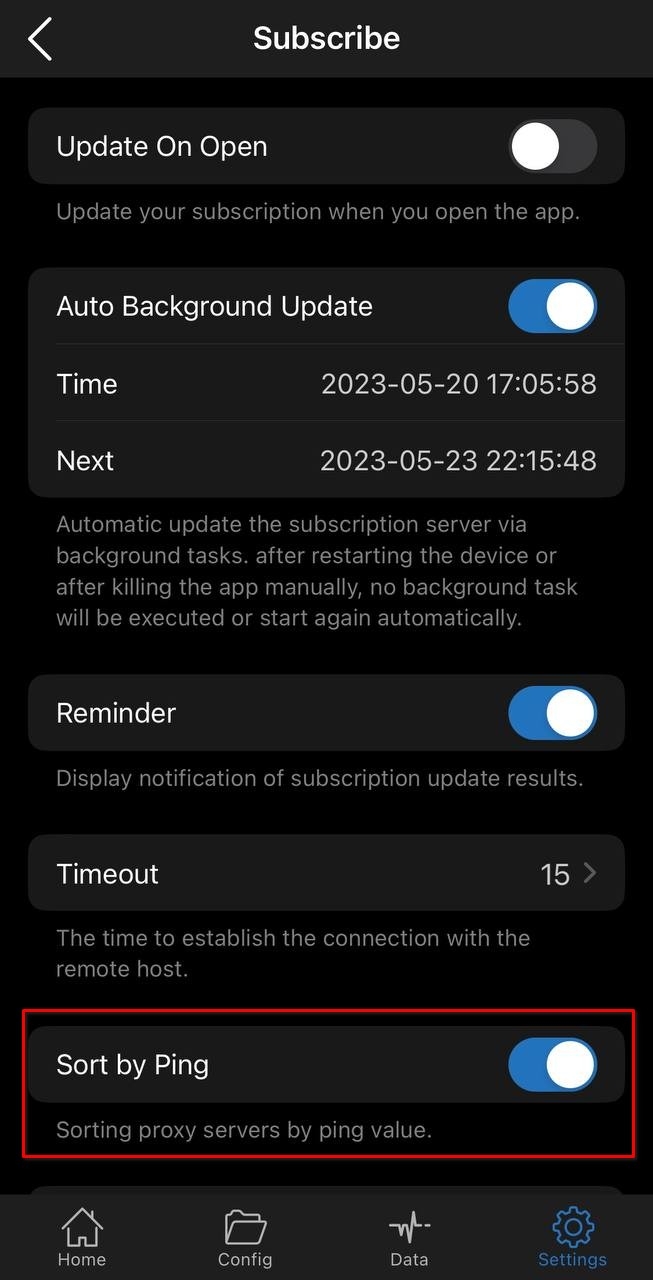 Nếu bạn muốn sắp xếp các cấu hình dựa trên kết quả kiểm tra ping, hãy chọn Sort by pingtùy chọn này.